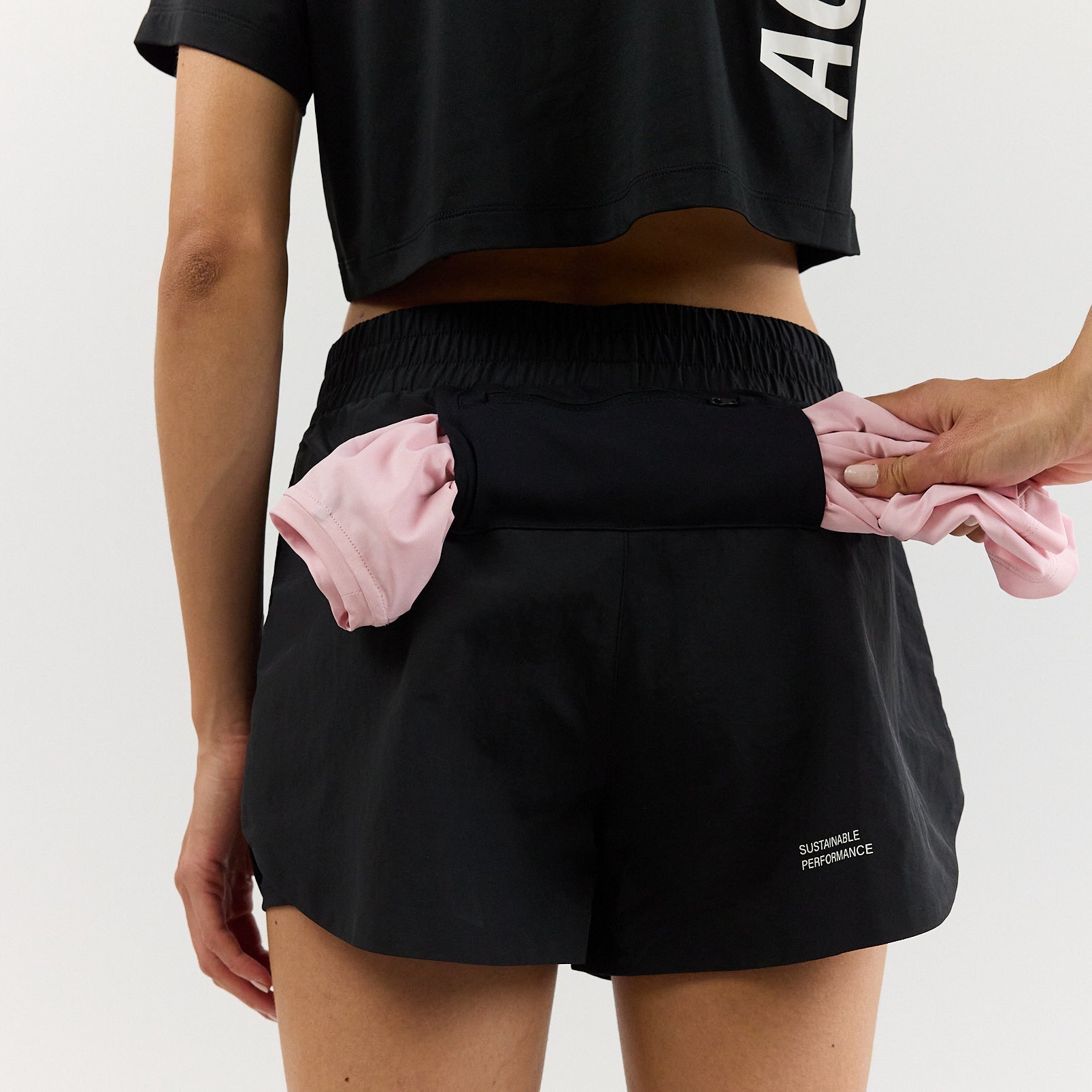 Cuissard intégré avec poche plaquée, conçue pour accueillir le téléphone tout en restant stable pendant la course.